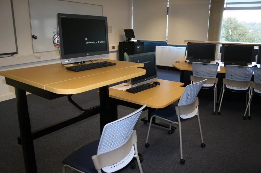 The I-Vari is an easy access desk available in a range of colours and finishes. It acts as a fully functioning computer table, including adjustable monitor arm, USB and audio connections that is specially designed for wheelchair users and able-bodied people to get comfortable and be totally accommodated. Created to be durable and long-lasting, the I-Vari is perfect for schools and comes with a range of personalisation options.